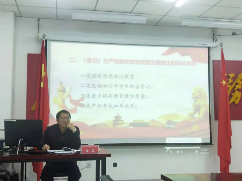 党课以“学习党章党规、牢记初心使命,加强教学管理、培养合格人才”为题,围绕学习贯彻落实习近平新时代中国特色社会主义思想和党章、党规,聚焦初心使命,学习贯彻教育部《关于深化本科教学改革全面提高人才培养质量的意见》,加强教育教学管理,深化教育教学改革,培养合格人才,推进学校实现内涵式发展,谈了认识和体会。