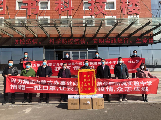 集宁师院附中党总支书记史敏,校长张文在,副校长王士恒,党总支副书记、副校长杨帆,副校长徐锋、马刚、常慧芳,办主任张东日,监察审计主任郭炜,代表学校和防疫值班人员一起接受了这份厚厚的“温暖”,并对程力集团表示衷心感谢。