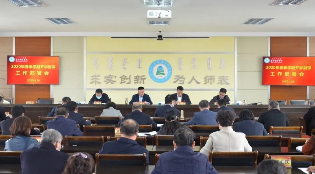 为贯彻落实自治区教育厅开学复课通知要求,扎实做好我校疫情防控和开学前各项准备工作,集宁师范学院于 4 月 26 日召开 2020 年春季学期开学复课工作部署会。党委委员、副校长许卫主持会议。党委副书记刘春,党委委员、副校长梁政,副校长李凤斌出席会议。党委委员、宣传部部长张富,党委委员、统战部部长张秀文,党委委员、人事处处长李景杰,党委委员、科技处处长李平,全校正处级干部参加会议。