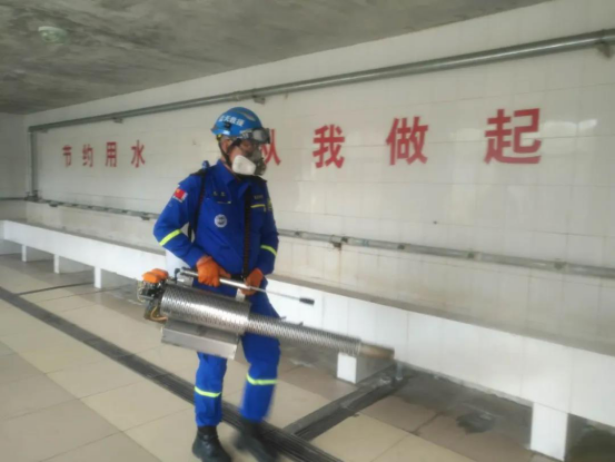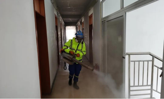 蓝天救援队利用2天的时间,对全校3个校区的教学楼、学生公寓、餐厅、办公楼、图书馆、体育馆、浴室等30余栋楼宇各个角落进行了全方位消毒,保证做到全覆盖、无遗漏。为降低风险,重点场所及实验室使用无毒害消毒液消毒。消杀工作中,后勤基建处周关锁、胡志胜、李建军、学生处王飞等全程指导消杀工作,蓝天救援队出动车辆2辆,弥雾机3台,消杀人员8人。