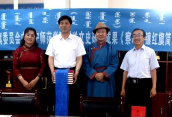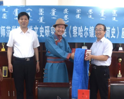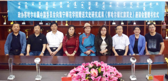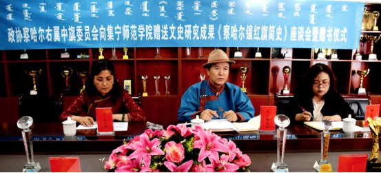 6月29日,政协察右中旗委员向集宁师范学院赠送文史研究成果《察哈尔镶红旗简史》座谈会暨赠书仪式在蒙古学学院会议室举行。
