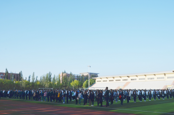 全体师生肃穆而立,满怀深情向国旗行注目礼,送上对祖国最美好的祝福。