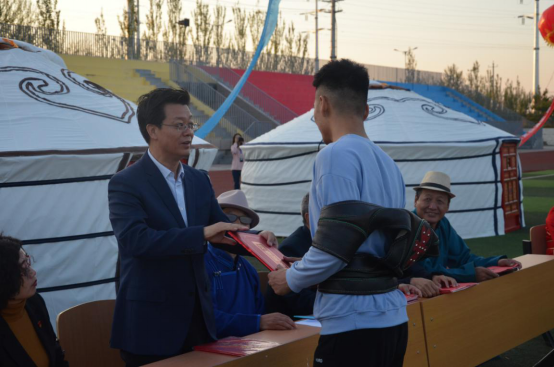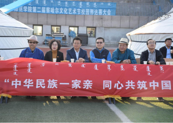 为深入贯彻落实习近平新时代中国特色社会主义思想,深化民族团结进步教育,铸牢中华民族共同体意识,传承和弘扬察哈尔文化,丰富学生校园文化生活,创建健康文明校园,9月24日,集宁师范学院在白海校区操场举办第二届察哈尔文化艺术节校园那达慕大会。本次那达慕大会由集宁师范学院主办、集宁师范学院蒙古学学院承办,大会主题为“中华民族一家亲,同心共筑中国梦”。学校党委书记朱玉东,党委委员、副校长许卫,党委委员、统战部部长张秀文以及白海校区各二级学院主要负责人出席并亲临现场观看比赛。蒙古学学院党总支书记青龙主持开幕式。