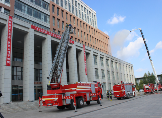 本次活动得到了集宁区消防救援大队大力支持,大队长蒋煜龙、教导员张晓飞带领消防官兵及五辆不同用途的消防车参加了演练活动。