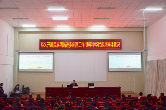 李树林主要围绕习近平总书记“铸牢中华民族共同体意识”的提出、重要性的体现、内涵以及实践路径四个方面进行了深入浅出的阐释。李树林结合中国古代史和中国共产党党史中大量有关民族团结的事例深刻剖析了“铸牢中华民族共同体意识,扎实推进民族团结和边疆稳固”的重要意义,为我校如何做好民族团结进步教育提出了指导性意见。