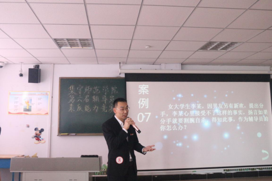 为深入贯彻落实全国高校思想政治工作会议精神和《普通高等学校辅导员队伍建设规定》要求,推动我校辅导员职业化、专业化发展,提升辅导员的专业素质和工作水平,11月11日,由校学生工作部(处)主办,政法与历史文化学院学工办、田博思政工作室协办的集宁师范学院第六届辅导员素质能力大赛在泉山校区主教学楼420室落下帷幕。校学生工作部(处)部长兰立新出席活动,文学院党总支书记张一弘、政法与历史文化学院党总支副书记武勇、经济与管理学院党总支副书记苗雯娟、地理科学学院党团负责人黄倩、政法与历史文化学院学工办主任田博担任评委。