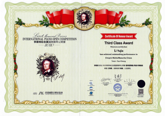 在集宁师范学院音乐学院青年钢琴教师姚铖的指导下,集宁师范学院2019级音乐学专业学生李雨佳,经过初赛、复赛和决赛,最终获得肖邦圆舞曲/马祖卡舞组曲三等奖。