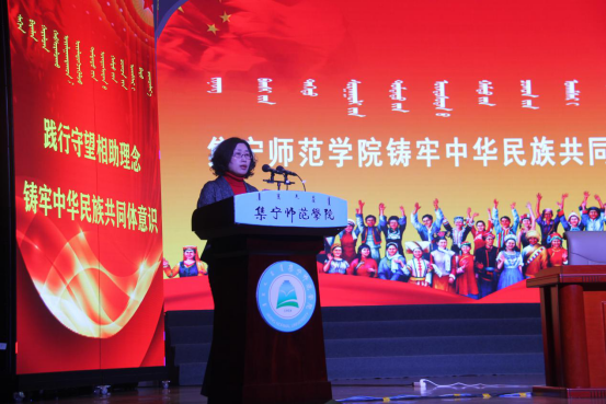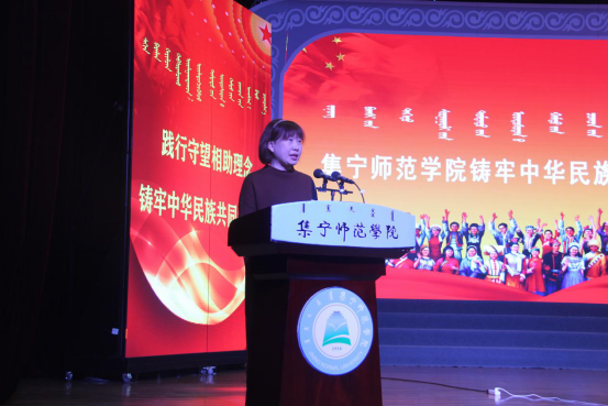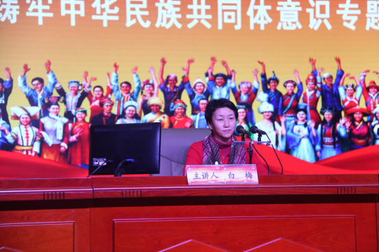 1月4日下午,自治区民委一级调研员白梅教授作“铸牢中华民族共同体意识”专题报告。许卫主持。报告从如何认识铸牢中华民族共同体意识与铸牢中华民族共同体意识怎么做两方面进行阐释。她结合工作、研究和生活实际,从民族问题和民族工作怎么看为切入点系统分析了民族工作的主题、主线,提出通过加强宣传教育、全面贯彻落实党的民族政策、建设社会主义强国等方式铸牢中华民族共同体意识,进一步做好民族工作。