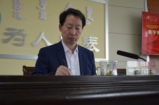 马克思主义学院党总支书记戈华、团委副书记李瑞俊、数学与统计学院党总支书记沙仁格日勒、生命科学与技术学院院长任琴、地理科学与规划学院党总支副书记张强、集宁师范学院附属中学党总支书记史敏、美术学院党总支书记焦俊亮、招生就业处处长刘国义分别就本学院、本部门前一阶段推进党史学习教育工作作典型交流发言。
