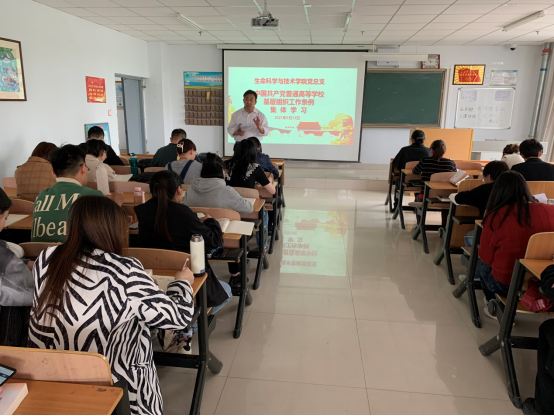 为了深入贯彻习近平新时代中国特色社会主义思想,贯彻落实新时代党的建设总要求和新时代党的组织路线,坚持和加强党对普通高等学校的全面领导,加强和改进高校党的建设,扎根中国大地办好中国特色社会主义大学,根据《中国共产党章程》和有关法律,制定《中国共产党普通高等学校基层组织工作条例》。根据集宁师范学院党委要求部署,5月13日,生命科学与技术学院党总支组织全体党员学习了《中国共产党普通高等学校基层组织工作条例》。本次学习活动由生命科学与技术学院党总支副书记孙登高主持并领学,生命科学与技术学院党总支副书记、院长任琴及全体师生党员参加了学习活动。