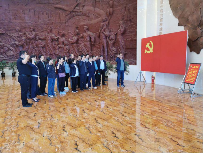 全体党员及积极分子在工作人员的指引下,文明有序地进入到馆内,面对鲜红的党旗重温了入党誓词。