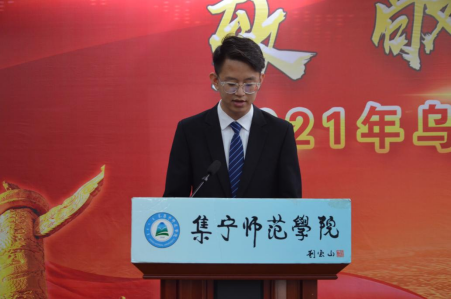集宁师范学院地理科学与规划学院李想和乌兰察布医学高等专科学校张兆焜代表退役复学和积极应征入伍大学生发言。李想回顾了军旅生活给自己带来的锻炼与改变,张兆焜表达了对参军入伍的热切希望,对军营生活的美好憧憬和向往。