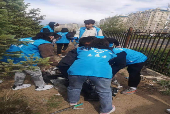 5月26日,2020级蒙古语言文学一班的24名同学在团总支书记白秀梅的带领下清理了白海校区东南角绿化带内的白色垃圾、边沟垃圾和枯枝落叶等杂物。