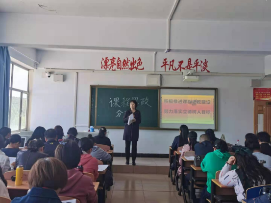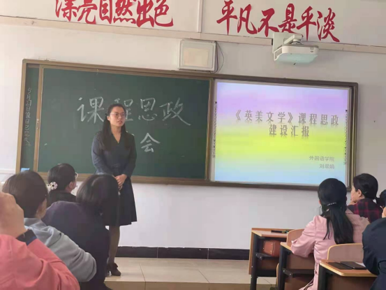 闫晓云带领教师学习了《内蒙古自治区党委高校工委自治区教育厅关于推进高校课程思政建设的实施方案》和学校的《聚焦发挥“主渠道”,强化课程思政建设工作方案》内容。安利萍、刘翠娟、张建芳、王利莎、曹祺婕分别就《跨文化交际》、《英美文学》、《大学英语》A层、《大学英语》B层、零起点《大学英语》的课程思政实施情况进行了交流发言。五位老师从不同的角度分享了课程思政的元素和如何将课程思政元素融入课堂教学中的具体做法。