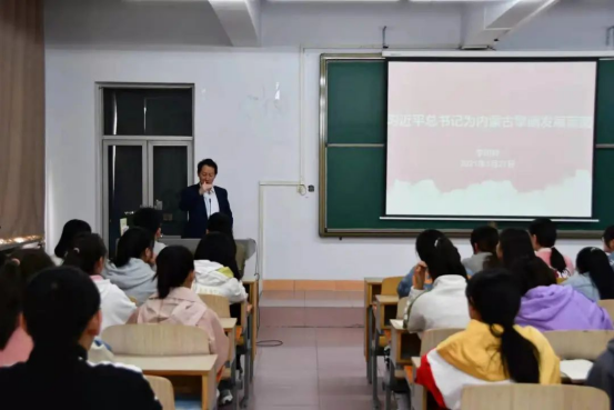 5月27日上午,集宁师范学院党委副书记、校长李树林为2020级数学与应用数学专业1班、2班讲授《铸牢中华民族共同体意识》课程第八讲“习近平总书记为内蒙古擘画发展蓝图”的内容,将习近平总书记从十八大以来对内蒙古的关怀和重要指示批示精神为同学们进行了系统梳理和精彩讲述。