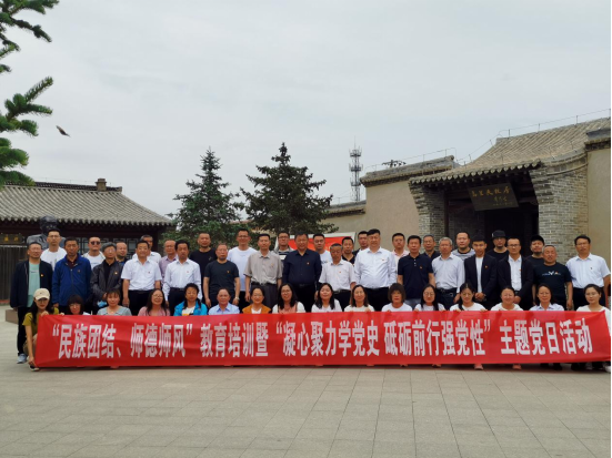 为进一步传承红色基因,提高党员党性休养,不断推进党史学习教育走深走实,加强教师师德师风建设,6月6日,集宁师范学院附属实验中学党总支联合宏星院教育集团,前往乌兰夫故居,开展了“民族团结、师德师风”教育培训暨“凝心聚力学党史砥砺前行强党性”主题党日活动。集宁师范学院纪委副书记赵向军、集宁师院附中领导班子成员、党总支委员、各支部书记、全体党员和部分教师参加了此次活动。