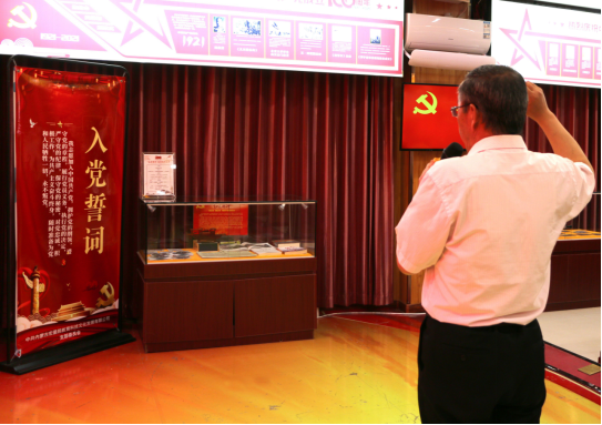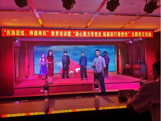 回到集宁,在宏星院报告厅,由党总支书记史敏领誓,全体党员重温了入党誓词,观看了革命情景诗朗诵,进行了结业总结。
