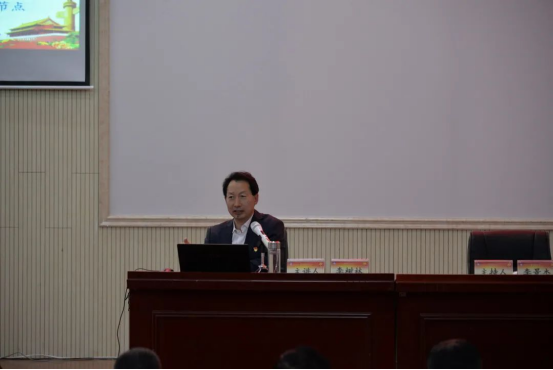 6月18日下午,按照学校党史学习教育工作安排,集宁师范学院党委副书记、校长李树林以“从党史中汲取智慧和力量——深入学习习近平总书记关于“党史”的重要论述”为题,为白海校区5个学院的师生党员讲专题党课。党委委员、人事处处长李景杰主持。