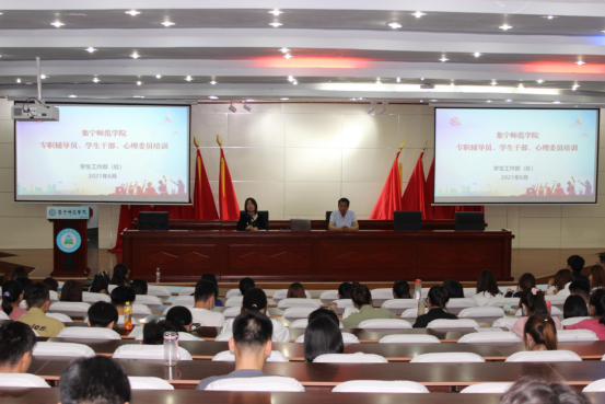 6月17-18日,根据《集宁师范学院关于开展第十一届“大学生心理健康教育宣传月系列活动”的通知》安排,集宁师范学院在白海校区教育科学学院楼和泉山校区图书馆报告厅分别举办专职辅导员、学生干部、心理委员培训讲座。讲座由学生工作部(处)组织实施,各二级学院专职辅导员、各班级班长、团支书及心理委员共计四百余人参加此次培训。学生工作部(处)部长兰立新、副部长额尔敦其其格出席讲座,并作开班训导。