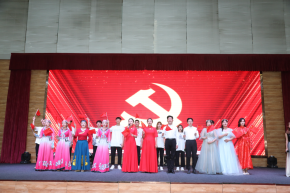 集宁师范学院现代服务学院学生选送的诗朗诵《信念永恒》、歌曲《唱支山歌给党听》充分体现了集宁师范学院大学生的家国情怀,展示了同学们牢固树立社会主义核心价值观、坚定“听党话、感党恩、跟党走”的理想信念。会议汇演在全体演职人员合唱《没有共产党就没有新中国》中圆满落幕。