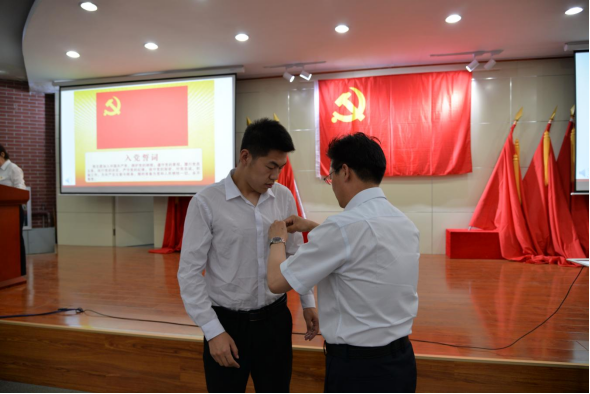 “我志愿加入中国共产党,拥护党的纲领,遵守党的章程,履行党员义务,执行党的决定……”,在党委书记朱玉东的带领下,240名新党员面向鲜红的党旗,举起右拳,庄严宣誓。铮铮誓言响彻大厅,字字铿锵表达了每一名新党员对党的忠心和为共产主义事业奋斗终生的决心。