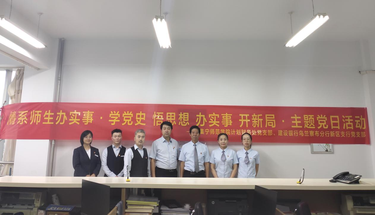 为深入学习贯彻习近平新时代中国特色社会主义思想,推动“学史力行”做实做细,庆祝中国共产党成立100周年,集宁师范学院计划财务处党支部与建设银行乌兰察布分行新区支行党支部联合开展“学党史、悟思想、办实事、开新局”主题党日活动暨情系师生办实事活动。