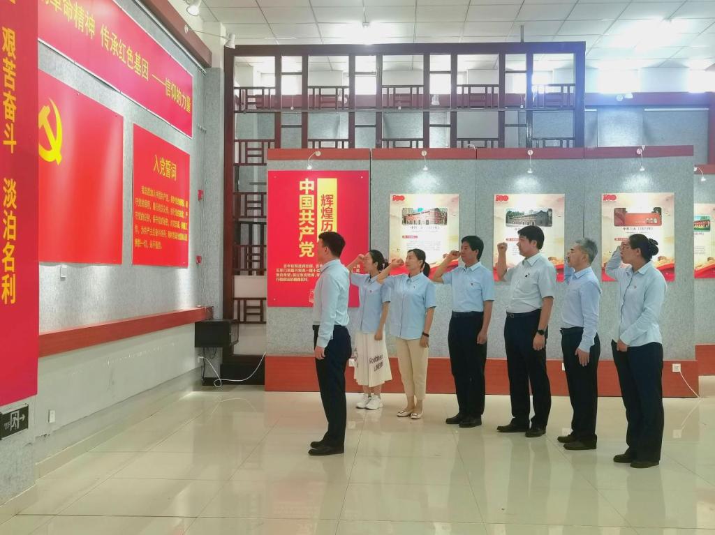 6月30日上午,两个党支部的全体党员共同去集宁师范学院美术与设计学院开展“学党史、悟思想、办实事、开新局”主题党日活动,参观了美术学院党史知识进校园展厅,共同重温入党誓词,面对党旗进行庄严宣誓;听取了美术与设计学院党总支书记焦俊亮详细的讲解,进一步感受学习了中国共产党在百年征程中所形成的伟大精神。全体党员一致表示,在今后的工作和生活中将时刻牢记历史,做到“学史明理、学史增信、学史崇德、学史力行”,牢固树立全心全意为人民服务的根本宗旨和坚定的理想信念,为我国金融和教育事业发展作出新的贡献。