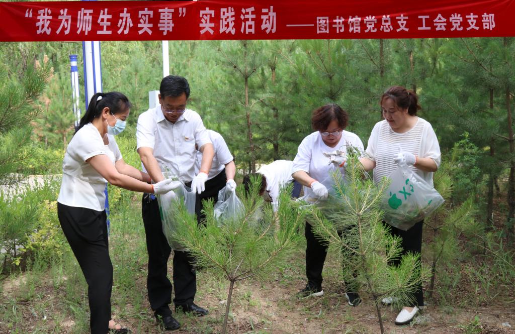 7月1日下午,图书馆党总支联合工会党支部开展“我为师生办实事”实践活动。不少师生都饱受过敏性鼻炎的困扰,过敏源主要来自蒿草,对图书馆周围的蒿草进行拔除。