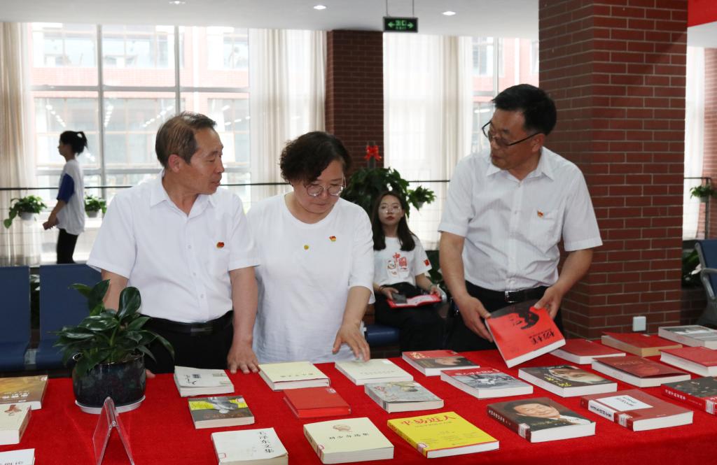为庆祝中国共产党成立100周年,引导广大读者学习党史知识,做到知史爱党、知史爱国,图书馆党总支联合工会党支部在图书馆一楼大厅举办“品读红色经典,坚定理想信念”主题党日暨第一届党史书籍及新书展,并邀请部分退休党员参加了此次活动。