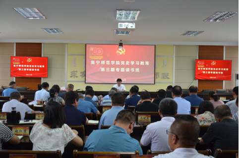 7月22日和25日,集宁师范学院举办学习贯彻习近平总书记“七一”重要讲话专题读书班(党史学习教育第三期读书班)。校党委书记朱玉东,党委副书记、校长李树林,副校长李凤斌,党委委员、宣传部部长张富,党委委员、统战部部长张秀文,党委委员、人事处处长李景杰及全校副处级以上干部参加了本期专题读书班。
