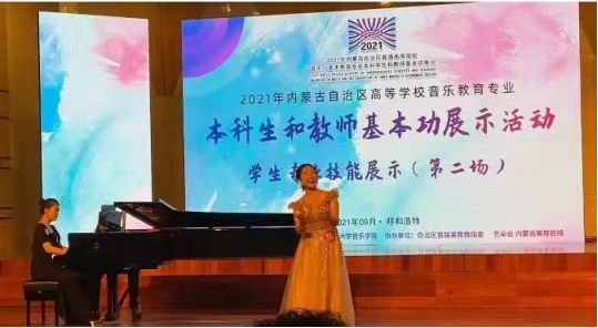 9月13-16日,内蒙古自治区普通高等学校音乐教育专业本科学生和教师基本功展示在内蒙古师范大学举办。此次参展由内蒙古自治区教育厅主办,来自全区9所高校的27名教师和27名本科学子参加了比赛。项目包括教学展示、歌唱与钢琴伴奏、自弹自唱、中外乐器演奏、声乐、舞蹈、合唱指挥等。