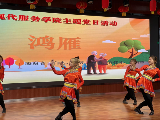 现代服务学院的同学们以《天边》、《明天会更好》等歌曲,《扇舞丹青》、《鸿雁》等舞蹈,《丰碑》、《将进酒》等朗诵,为老人们带来欢乐的同时,也丰富了大家的精神生活,同学们陪老人欢度节日,其乐融融。