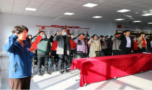 活动中,全体党员与积极分子奏唱国歌、重温入党誓词、诵读党章。
