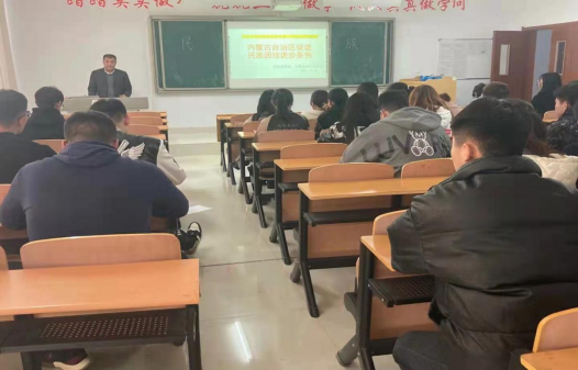 李景杰结合刚刚结束的中央民族工作会议精神和内蒙古自治区与我校实际详细宣讲了《内蒙古自治区促进民族团结进步条例》,要求同学们业余时间认真学习条例内容,以实际行动落实铸牢中华民族共同体意识的要求,做文明典范、时代新人。