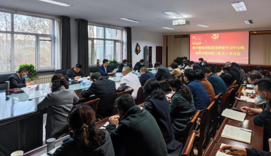 10月20日,集宁师范学院举行校党委理论学习中心组2021年第13次(扩大)学习会。校党委书记、党委理论学习中心组组长朱玉东主持会议。党委副书记、校长李树林,党委副书记刘春,党委委员、副校长梁政,党委委员、宣传部部长张富,党委委员、统战部部长张秀文,党委委员、人事处处长李景杰,党委委员、科技处处长李平等校党委中心组成员参加学习。各部门、二级学院主要负责人列席。