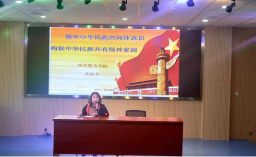 10月28日,学院副院长武俊芳为联系班级2019级播音主持班做《铸牢中华民族共同体意识 构筑中华民族共有精神家园》讲座。