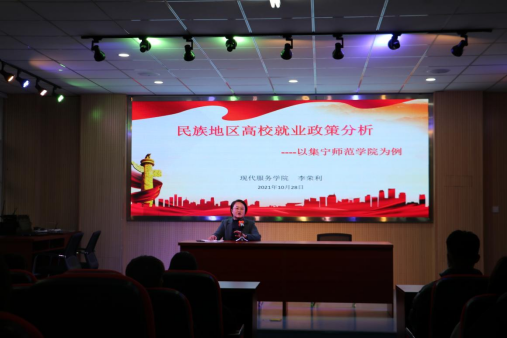 10月28日,学院书记李荣利为联系班级2021级空乘1、2、3班做《民族地区高校就业政策分析——以集宁师范学院为例》讲座。