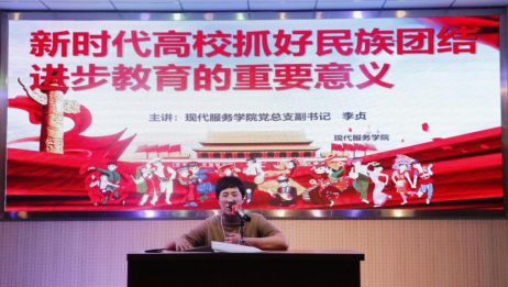 10月20日,学院副书记李贞为联系班级2018级旅游管理专业1、2班做《新时代高校抓好民族团结进步教育的重要意义》讲座。