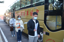 此次考试共租用客运公司10辆大巴车,其中5辆车往返运送泉山校区考生,另外5辆往返运送白海校区考生。学校派出招就处2名教师在集宁四中、五中负责综合协调工作,各二级学院共派出18名教师负责跟车服务工作。10月30日早上7点30分,满载考生的大巴车分别从泉山校区、白海校区出发,奔赴集宁四中、集宁五中两个考点。
