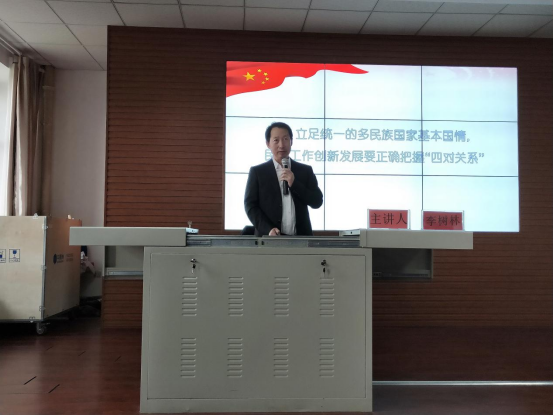 讲座中,李树林对历次中央民族工作会议精神进行了梳理,从“立足两个大局,深刻理解和把握铸牢中华民族共同体意识的重大意义”、“立足统一的多民族国家基本国情,民族工作创新发展要正确把握‘四对关系’”、“以铸牢中华民族共同体意识为主线,做好新时代党的民族工作”三个方面深刻阐明了铸牢中华民族共同体意识的重大意义。