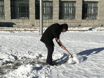 11月7日,乌兰察布市地区下了今年入冬以来第一场大雪。厚厚的积雪覆盖了集宁师范学院校园,整个校园内银装素裹,风景如画,让人心旷神怡,但大雪也给师生的出行带来很大不便。为了全校师生的出入安全,11月8日,化学与化工学院组织开展了“我为群众办实事——除雪、清道、保安全”主题党日活动。在遵守疫情防控和维护个人安全前提下,化学与化工学院教师党员和学生党员全部投入了铲除积雪、破除暗冰、清扫校园道路工作之中,集中清除了逸夫楼前人流量较大区域的积雪。