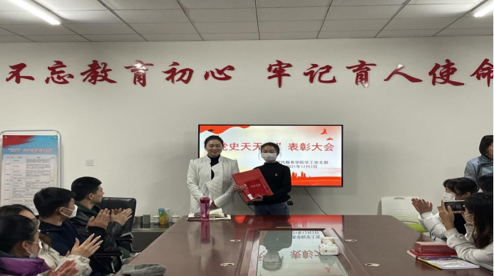 感悟建党精神,延续红色血脉,传承党的文化基因和精神品格。12月2日,现代服务学院学工党支部开展“党史天天学”表彰活动。学工支部书记赵思捷主持,宣传委员任晓庆及全体学生党员参加了表彰活动。