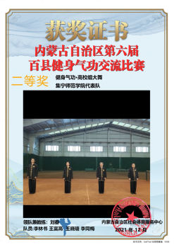 为全面落实全民健身国家战略,推动全民健身与全民健康深度融合,倡导健身爱好者,因地制宜积极参与体育锻炼,由内蒙古自治区社会体育服务中心主办,自治区各盟市体育部门,内蒙古健身气功协会协办的“第六届全区百县健身气功交流比赛”正式拉开帷幕,本次比赛从10月20号开始至12月1号结束,分为城区组、旗县组、企事业社会团体组和高校组。我校由刘春书记为领队兼任教练,选拔李林书,王富高,李同梅、王晓瑭4名教师组队参加了本次赛。