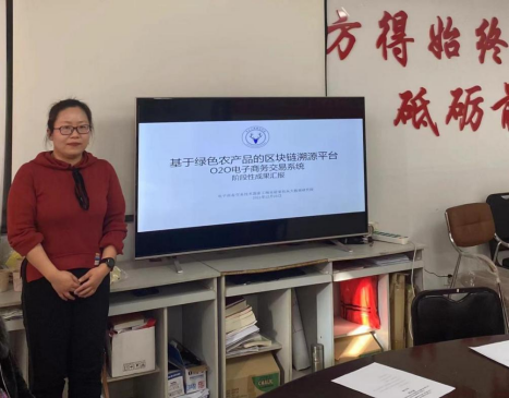 关键技术攻关项目负责人姚玉阁教授和成员单位电子商务交易技术国家工程实验室包头大数据研究院魏利杰、北京中晟华安信息技术有限公司董事长兰助晴对《基于绿色农产品的区块链溯源平台》项目的研究意义、项目的验收标准、涉及成果、分工情况、经费使用情况以及项目进度进行了汇报。