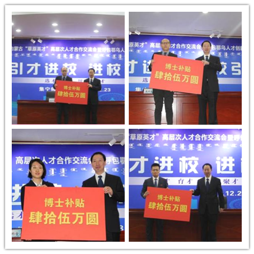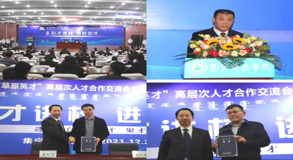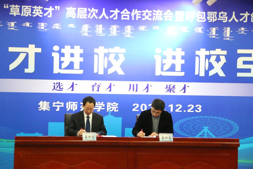 12月23日上午,第九届内蒙古“草原英才”高层次人才合作交流会暨呼包鄂乌人才创新创业周在乌兰察布市主会场开幕,下午,我校承办的“引才进校、进校引才”分项活动在图书馆报告厅隆重举行。合作单位代表、全体校领导、党委委员、各部门主要负责人、博士及在读博士教师等200余人参加活动。校党委书记朱玉东发表总结讲话,党委副书记、校长李树林与合作单位代表举行了签约、揭牌仪式。活动由党委委员、副校长李景杰主持。