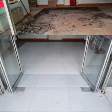 修缮前后楼宇门庭地板 个别防水岩修缮
