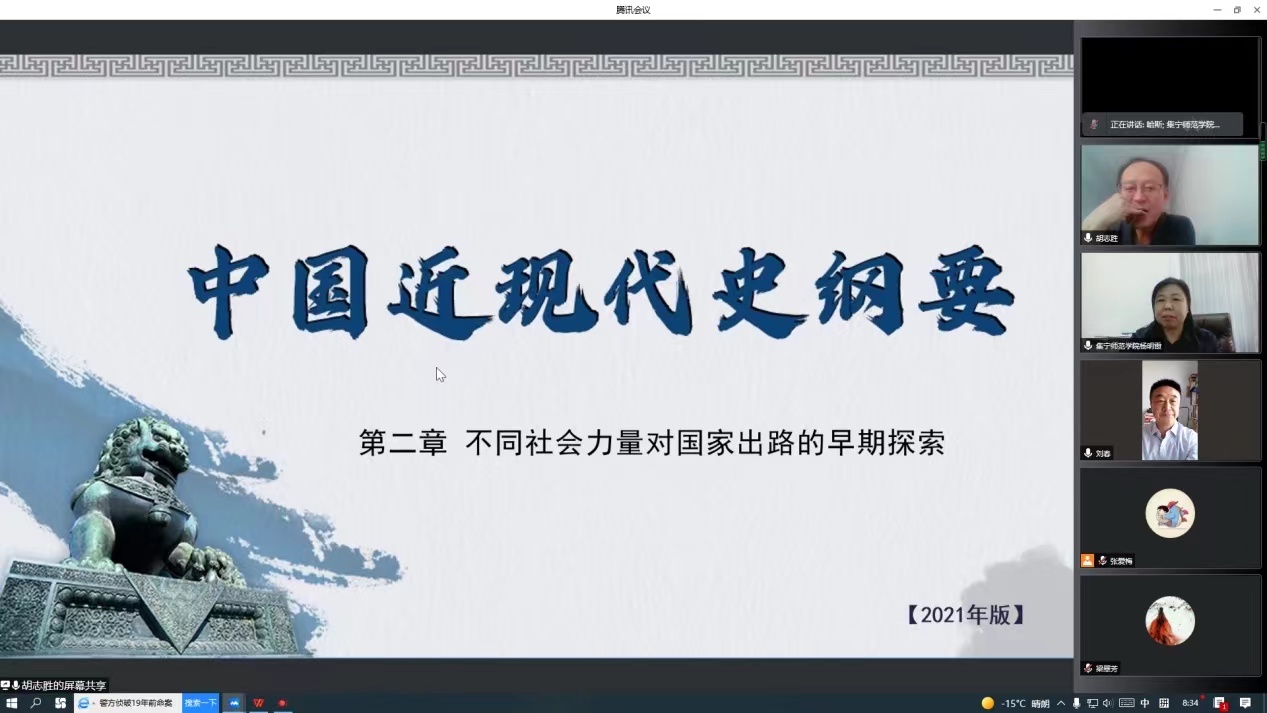 2月24、25日两天,集宁师范学院马克思主义学院马克思主义中国化教研室和中国近现代史纲要教研室在寒假期间集体修订教学大纲、分工负责撰写教案、制作课件基础上,分别组织《毛泽东思想和中国特色社会主义理论体系概论》、《中国近现代史纲要》课程全体任课教师开展线上集体备课磨课活动。集宁师范学院党委副书记刘春出席,马克思主义学院党总支副书记胡志胜、院长杨明霞、副院长段文智一同参加了教研活动。