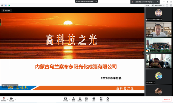 为了促进化学与化工学院2022届毕业生就业,学院于4月1日组织举办毕业生春季校园专场线上招聘会议,本次招聘单位是内蒙古乌兰察布东阳光化成箔有限公司,化学与化工学院2022届毕业生80多人参加了此次线上招聘会议。招聘会议由化学与化工学院学工办负责人李强主持。