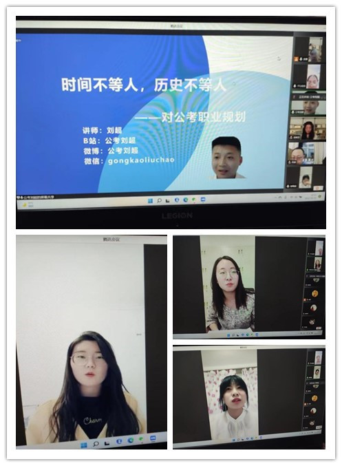 刘超以“时间不等人,历史不等人——对公考职业规划”为题,详细介绍了公务员考试,事业单位联考、事业单位公基、教师招考、三支一扶、社区民生、特岗等方面就业情况,开拓了同学们就业视野,将各个就业途径一一列举,同学们受益匪浅。