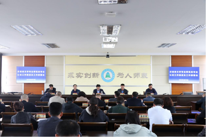 为迎接教育部普通高等学校师范类专业认证专家组对汉语言文学专业的线上考查,确保高质量完成认证各项工作,4月19日下午,我校在行政楼5楼召开汉语言文学专业师范类专业认证推进及工作部署会。会议由学校党委副书记刘春主持。